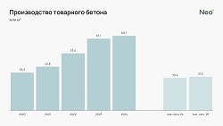 С 2024 года темпы роста производства товарного бетона замедлились до 3,9%. За первое полугодие 2025 года производство увеличилось всего на 3,6% по сравнению с аналогичным периодом 2024-го.