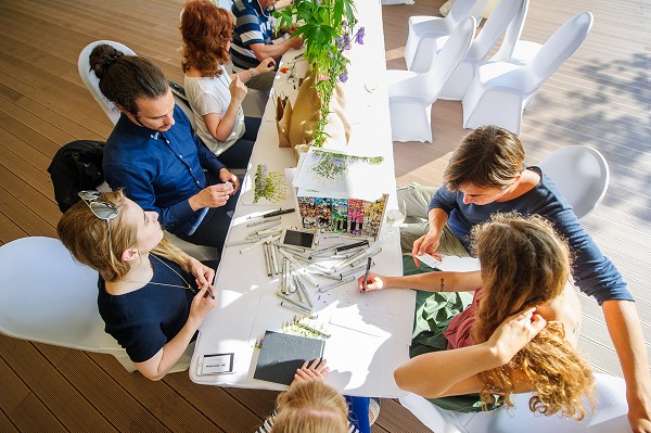 Архитектурный коктейль собрал под открытым небом более 60 человек – экспертов в области градостроения и дизайна. На призыв откликнулись почти все: от гостей пилотного Архитектурного завтрака до тех, кто узнал о проекте только в июне. Приятная и неформальная обстановка, живая музыка и дегустация вин вместе с настоящим сомелье позволили отложить в сторону все рабочие вопросы и по-настоящему перезагрузиться! Благодаря формату нетворкинга на природе, занятие по душе смог найти каждый. Пока одни, на время забыв об оставшихся в AutoCAD чертежах и текущих проектах, самозабвенно играли в мини-гольф, другие рисовали скетчи в специально отведенной зоне или участвовали в мастер-классе по стрижке туи. Не меньший энтузиазм вызвал и фотоконкурс, за победу в котором участники получили ценные призы: билеты на сентябрьский концерт Робби Уильямса в Москве и сертификат от Imperial Garden на 10 000 рублей.