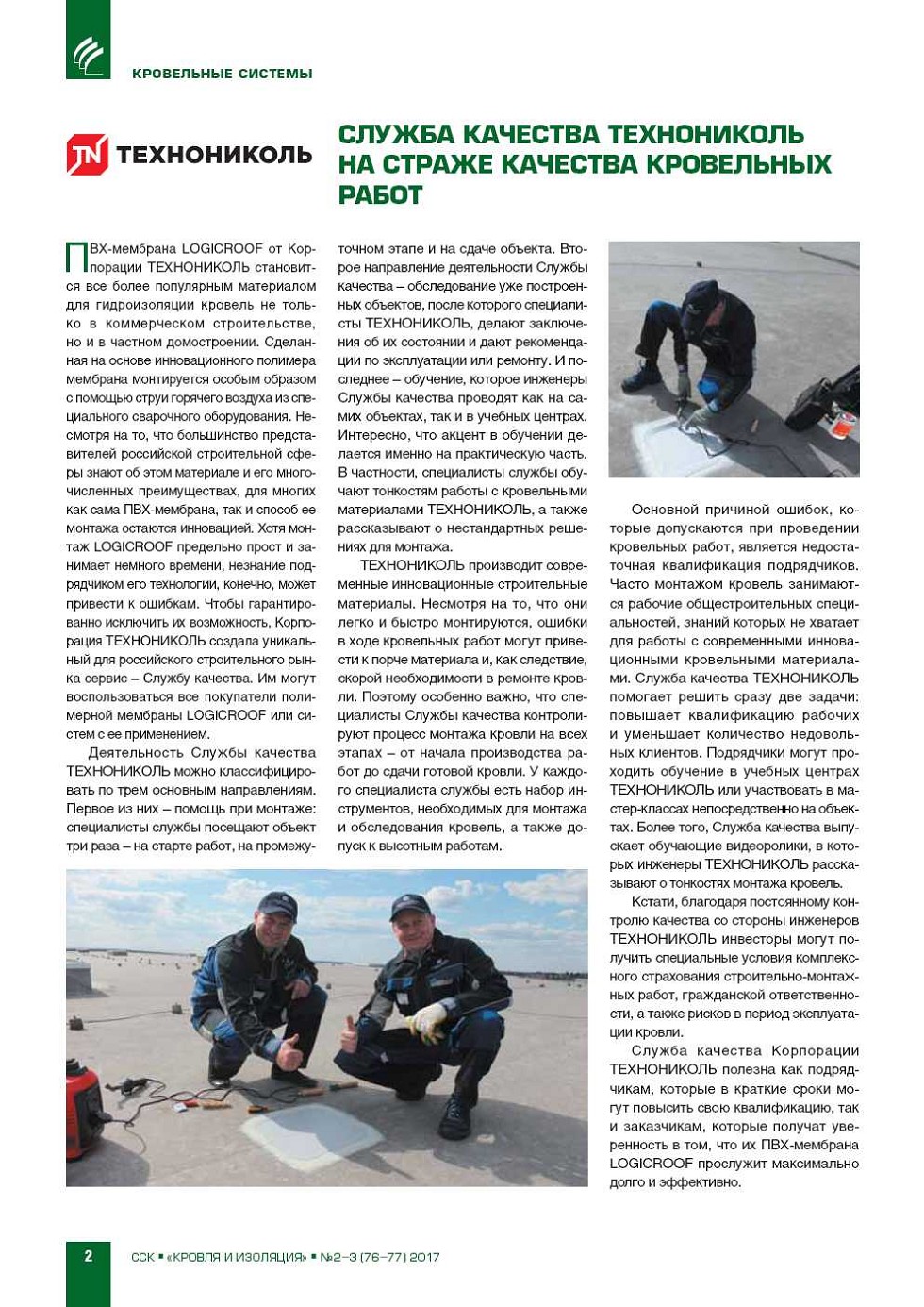 Служба качества «ТехноНИКОЛЬ» на страже качества кровельных работ