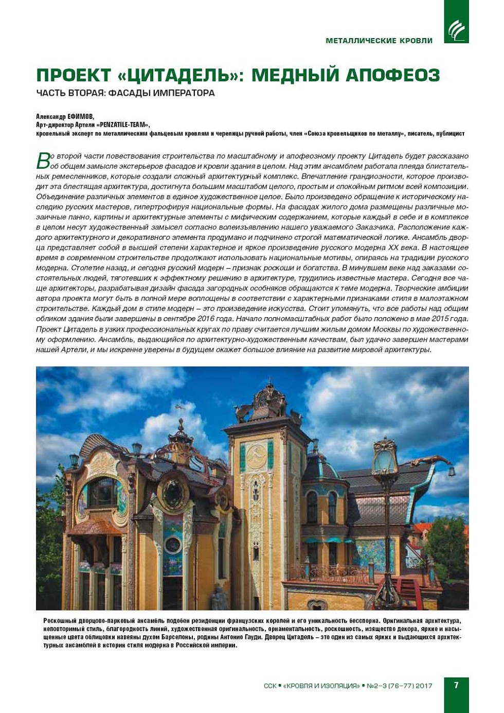 А.Ефимов (Артель «PenzaTile-Team»). Проект «Цитадель»: медный апофеоз.