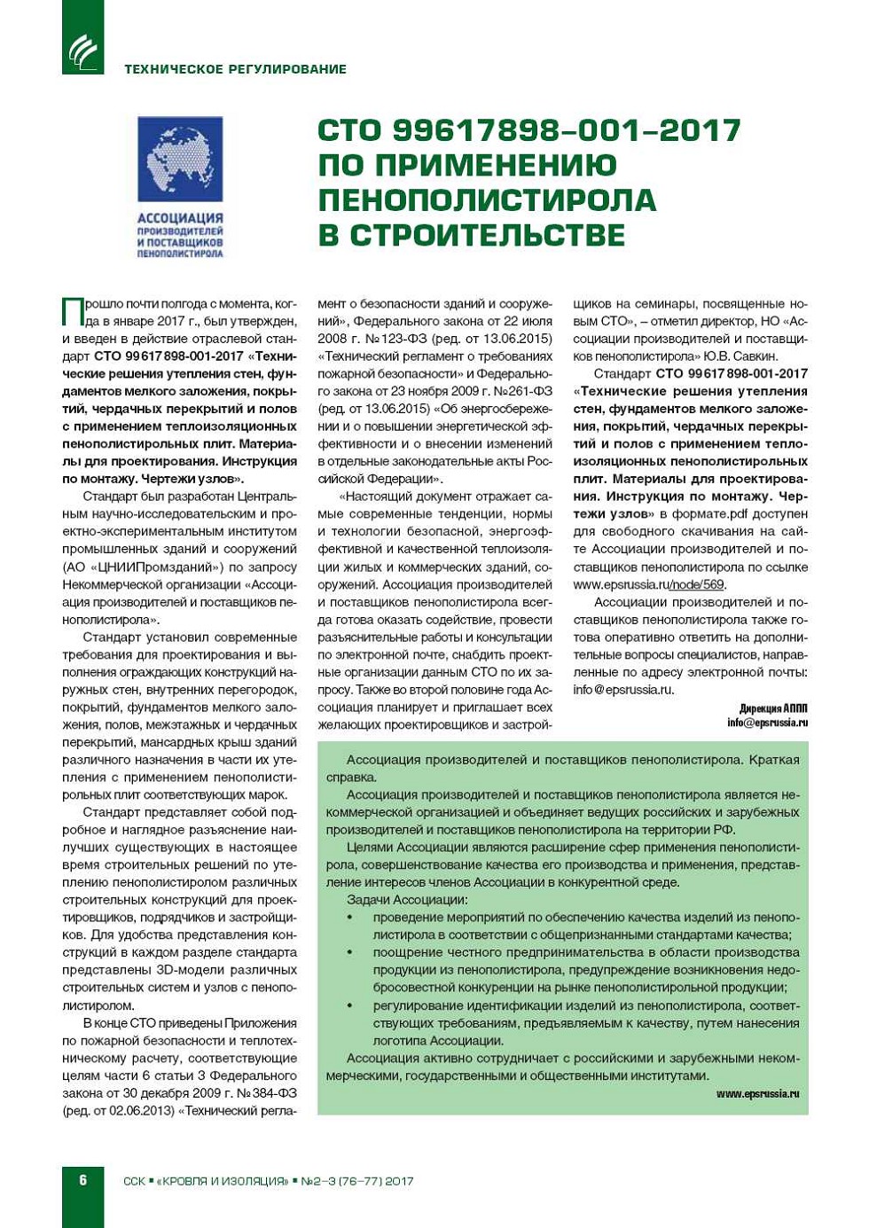 СТО 99617898-001-2017 по применению пенополистирола в строительстве