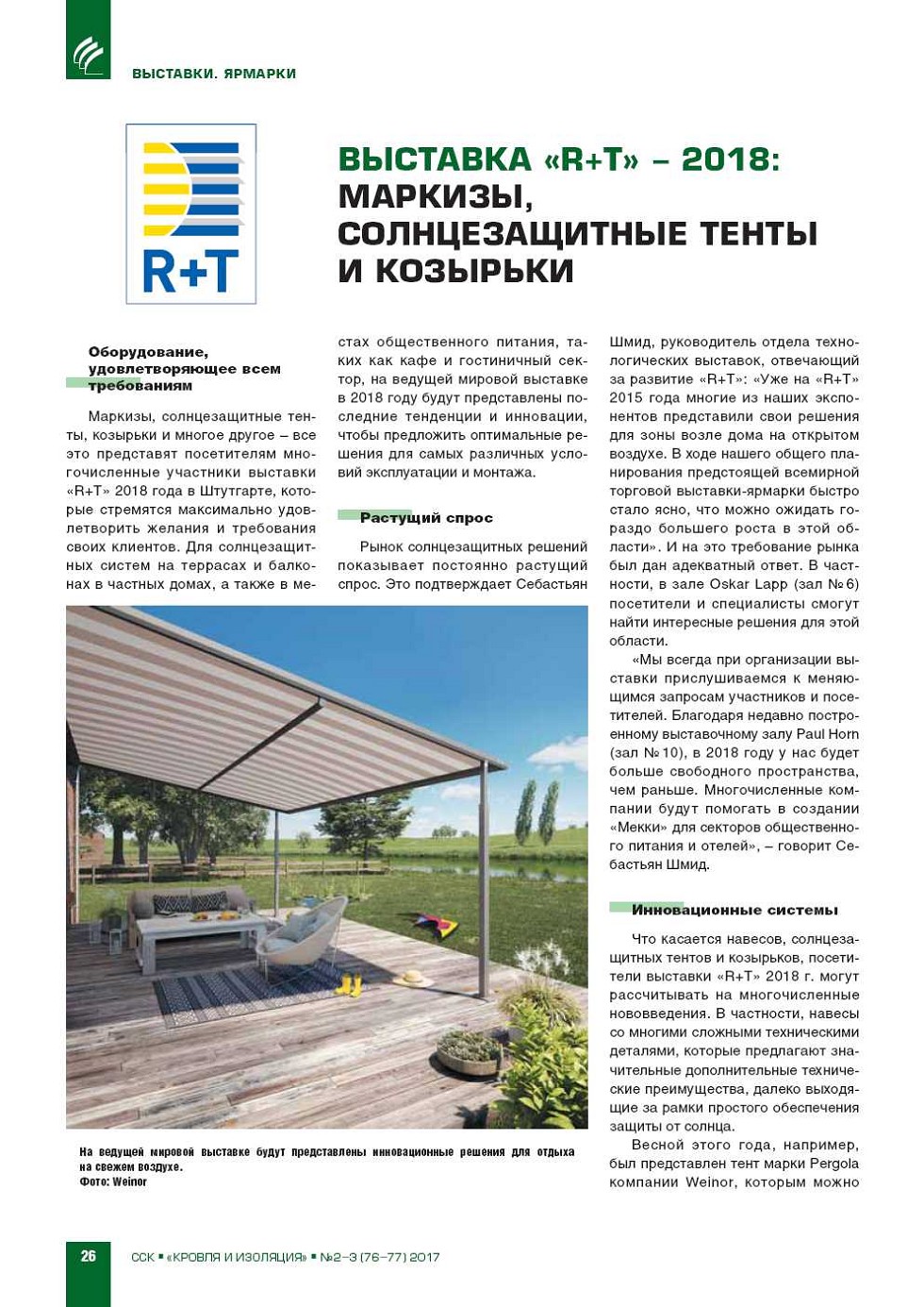 Выставка «R+T» – 2018: Маркизы, солнцезащитные тенты и козырьки