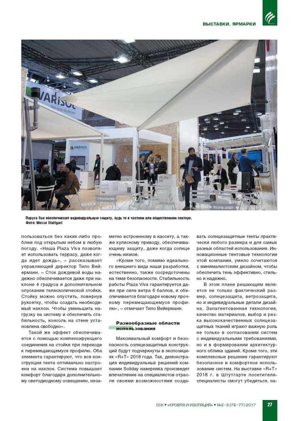 Оборудование, удовлетворяющее всем требованиям Маркизы, солнцезащитные тенты, козырьки и многое другое – все это представят посетителям многочисленные участники выставки «R+T» 2018 года в Штутгарте, которые стремятся максимально удовлетворить желания... |