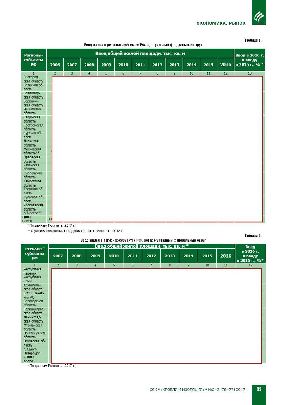 Потенциал, динамика развития и основные показатели российского строительного рынка подробно анализировались в [1–5]. Показано, что основным показателем (индикатором), характеризующим уровень развития строительства, является ввод жилья. |