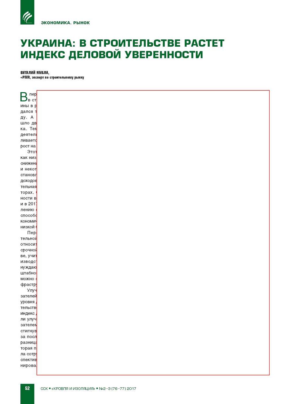 В. Ямбла (PMR). Украина: в строительстве растет индекс деловой уверенности