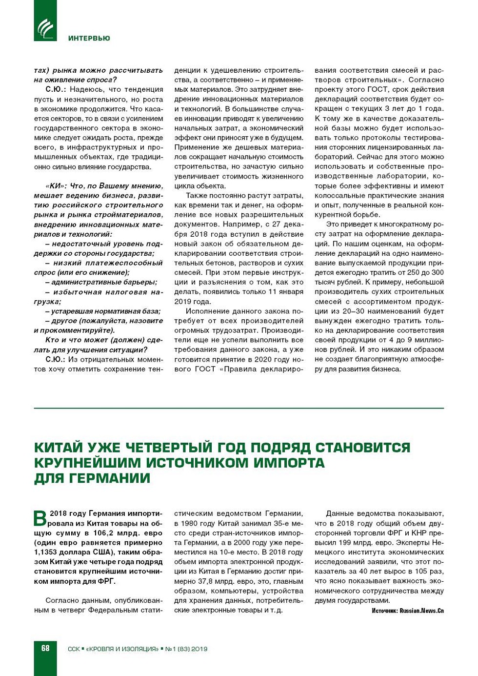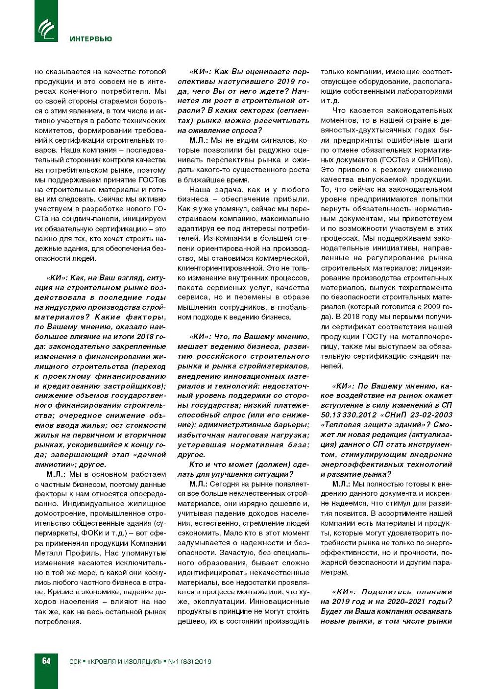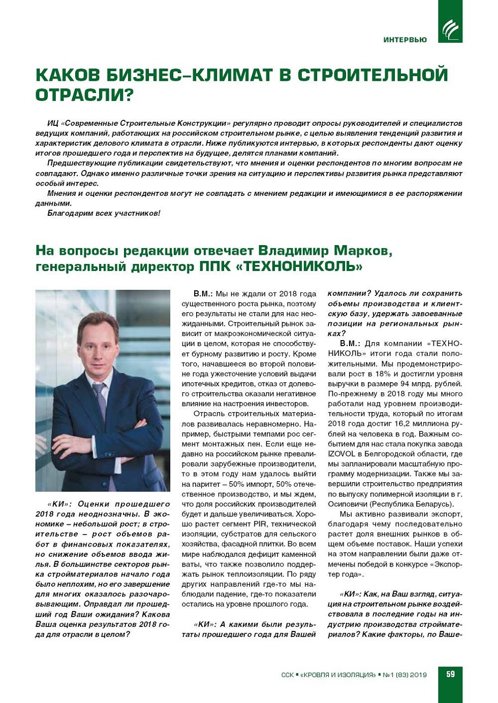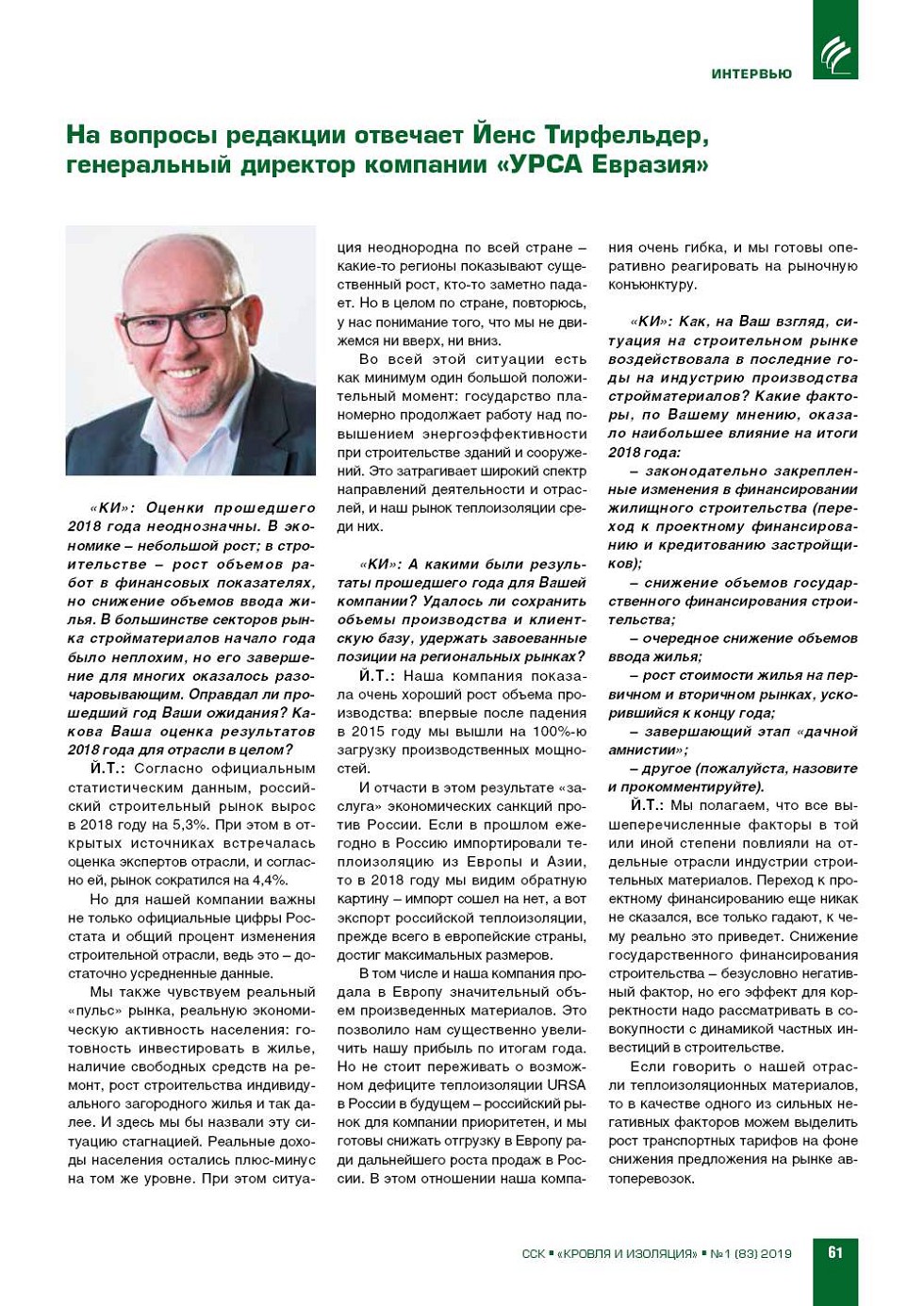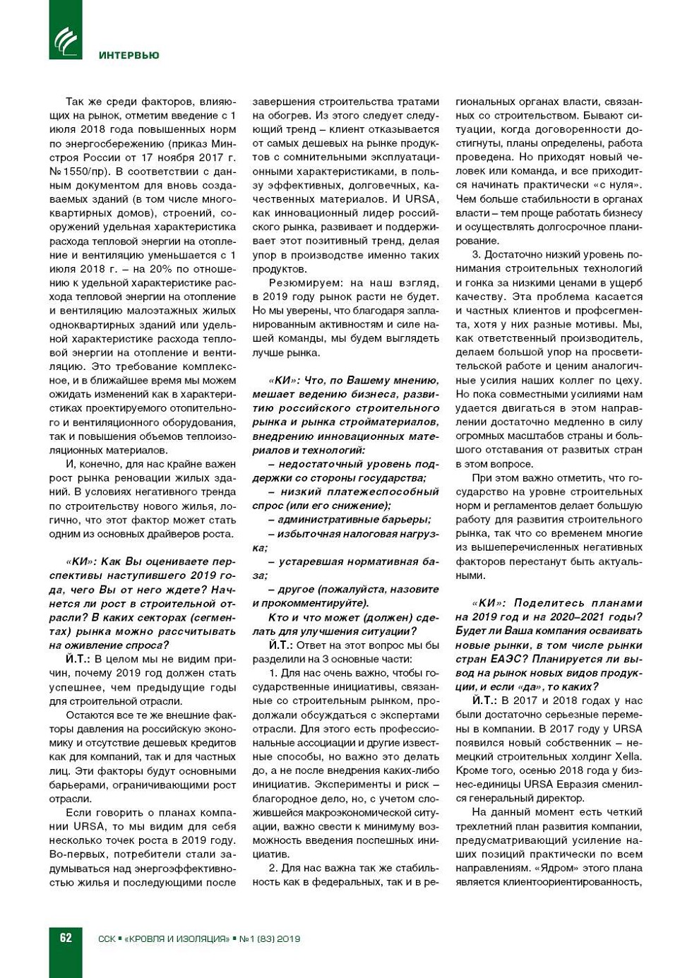 «КИ»: Сергей Юрьевич, оцен‑ ки прошедшего 2018 года неод‑ нозначны. В экономике – неболь‑ шой рост; в строительстве – рост объемов работ в финансовых по‑ казателях, но снижение объемов ввода жилья. В большинстве сек‑ торов... |