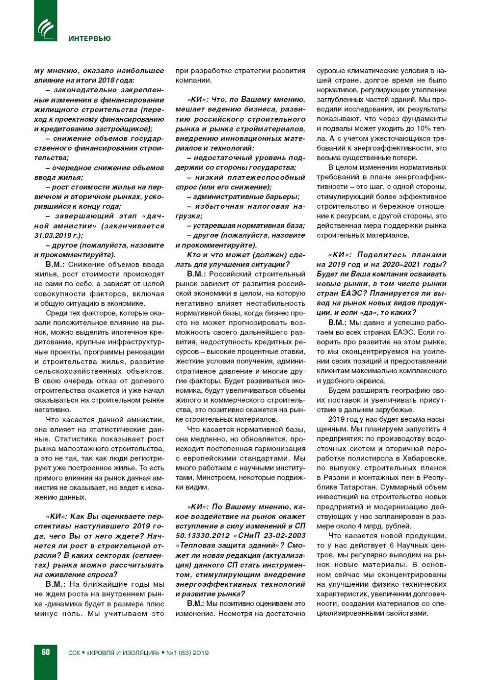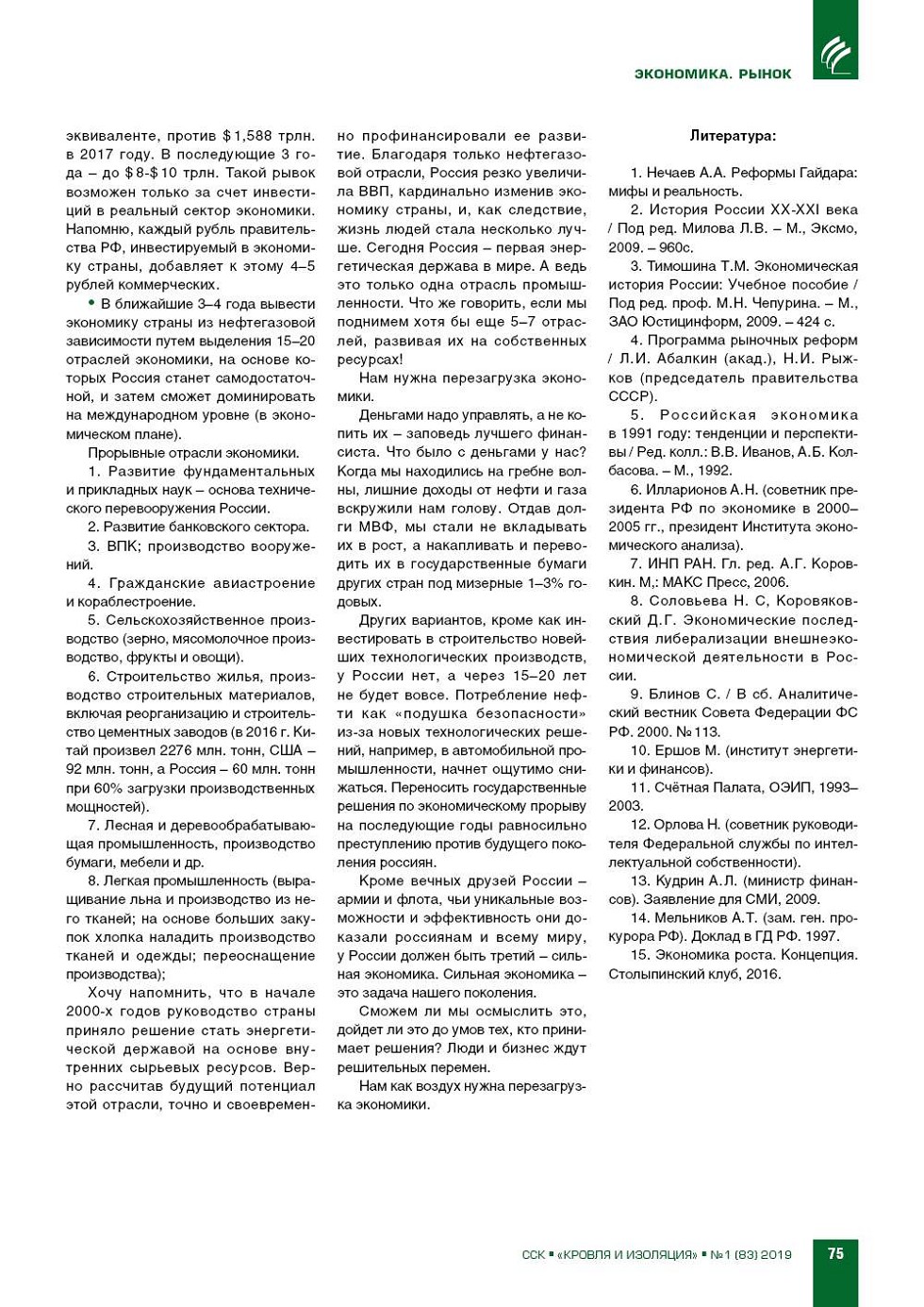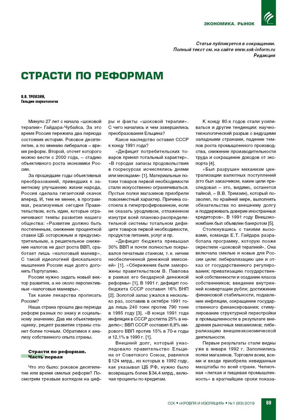 ВЫПУСК «1 (83)», 2019