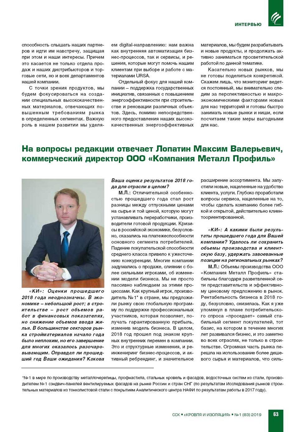На вопросы редакции отвечает М.В. Лопатин,
