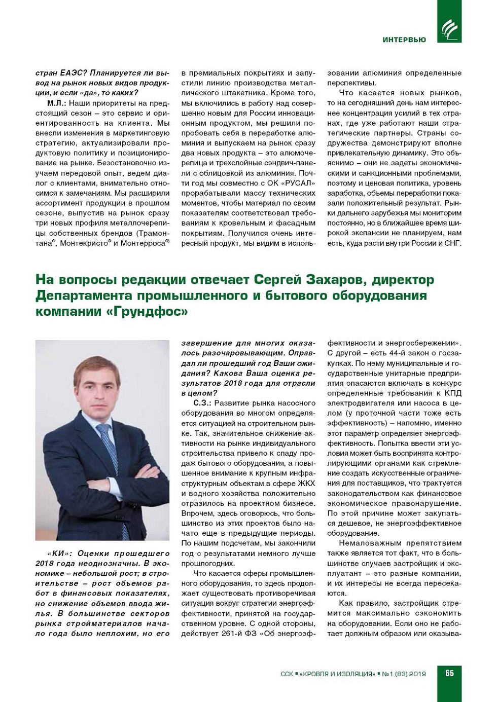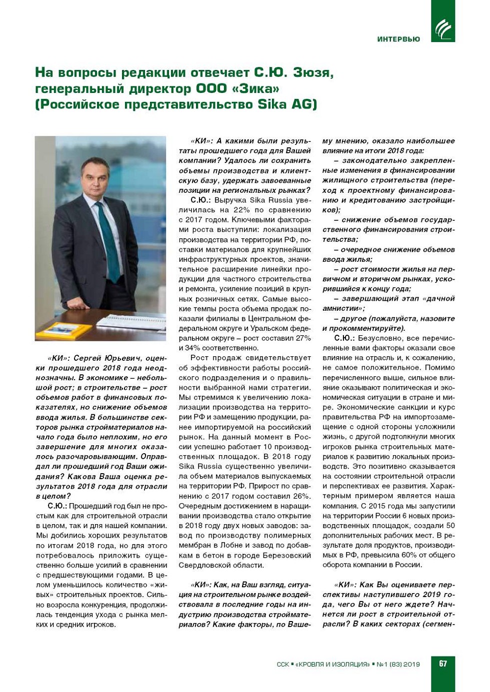 На вопросы редакции отвечает С.Ю. Зюзя, генеральный