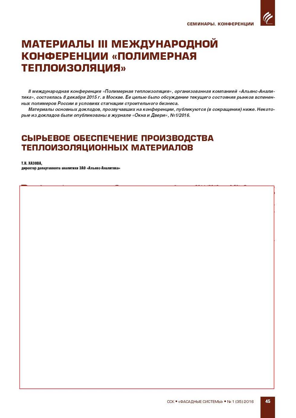 II международная конференция «Полимерная теплоизоляция», организованная компанией «АльянсАналитика», состоялась 8 декабря 2015 г. в Москве. Ее целью было обсуждение текущего состояния рынков вспененных полимеров России в условиях стагнации строительного... |