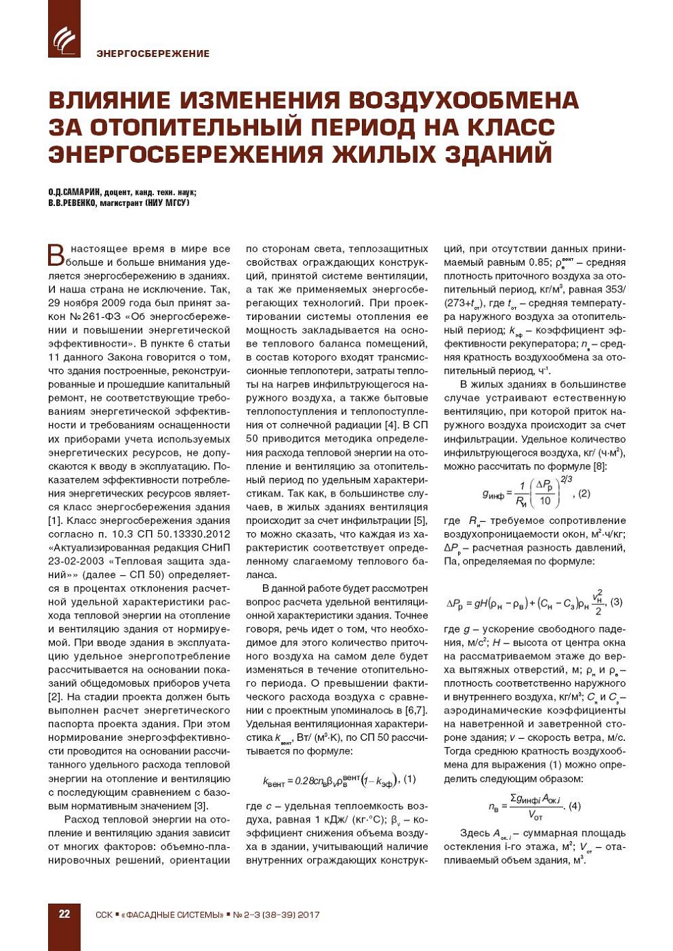 О.Д. Самарин, В.В. Ревенко (НИУ МГСУ). Влияние изменения воздухообмена
