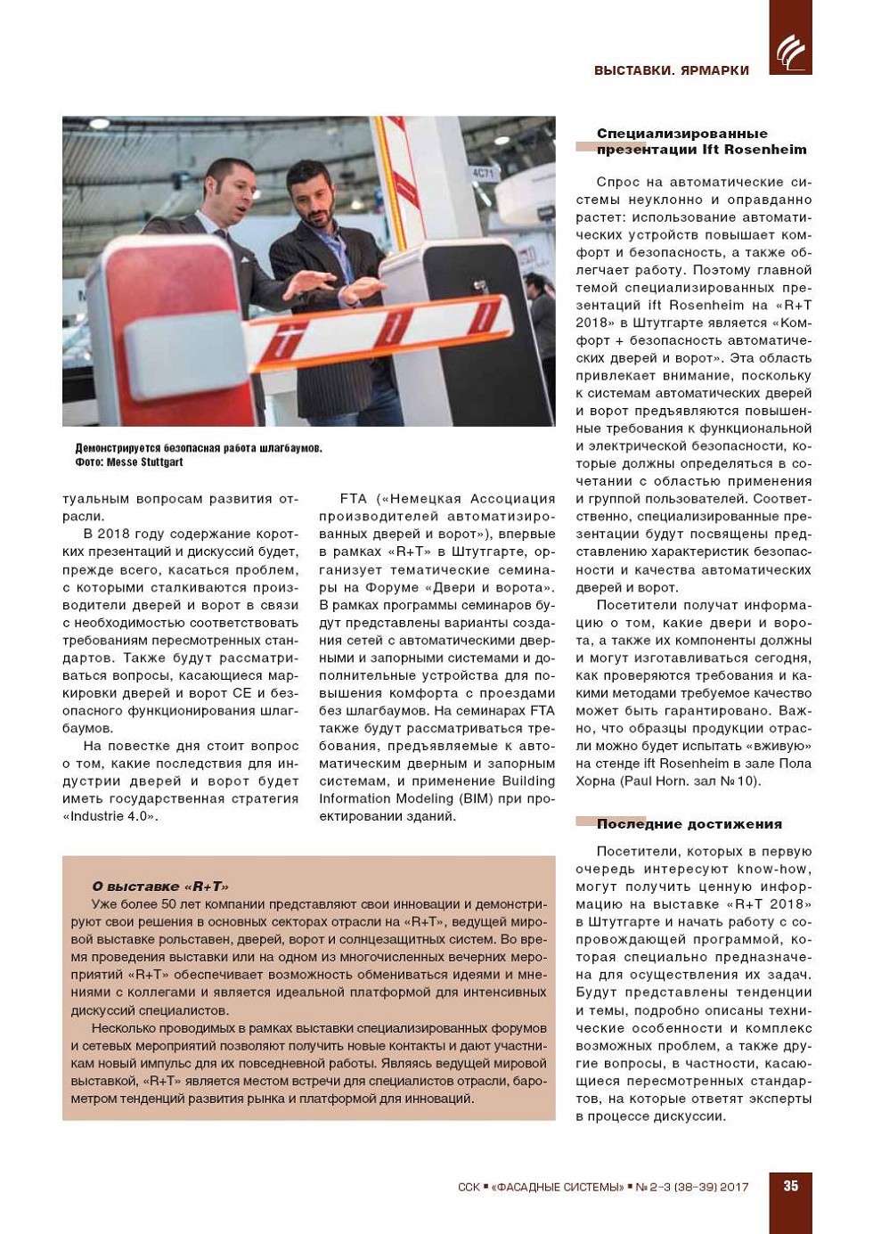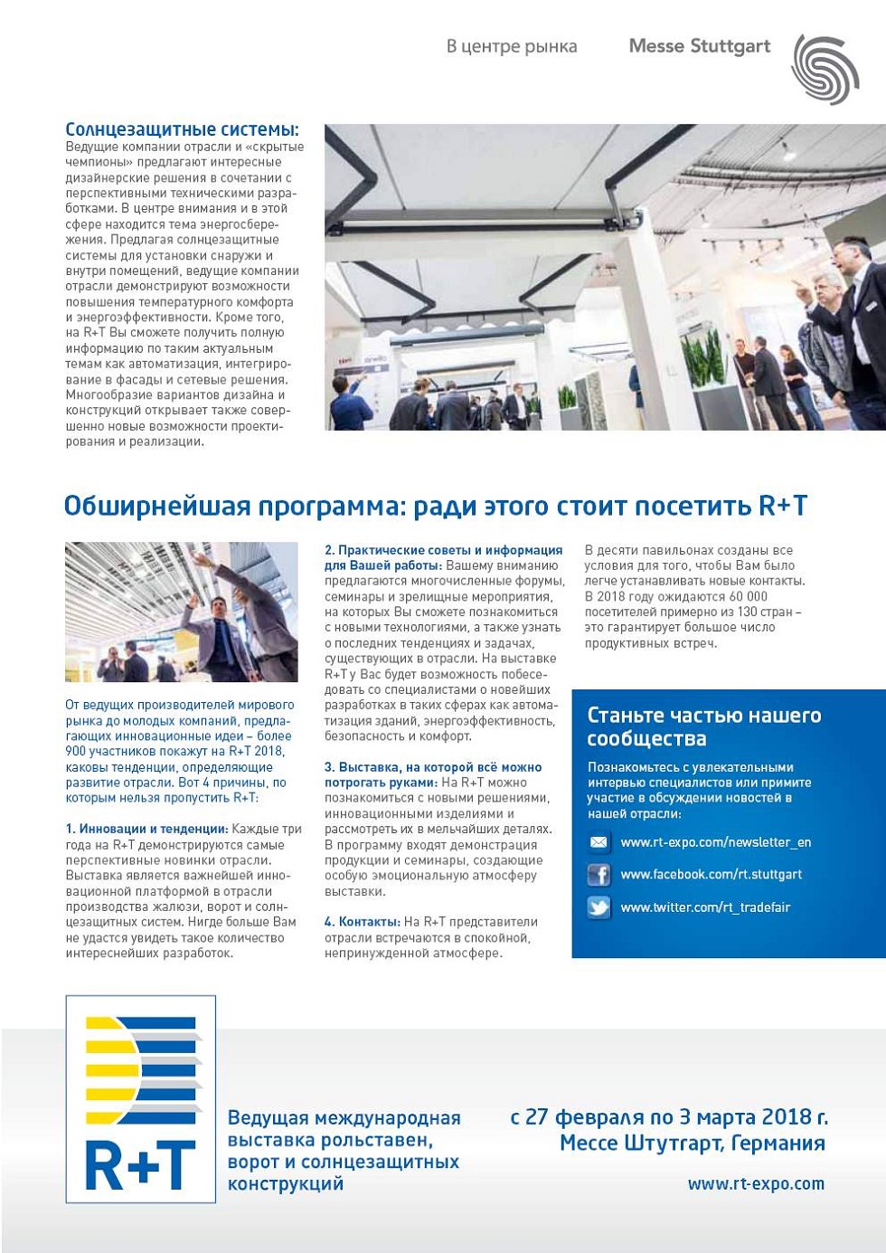 «R+T 2018» в Штутгарте: авторитетные партнеры и лучшие «ноу-хау»