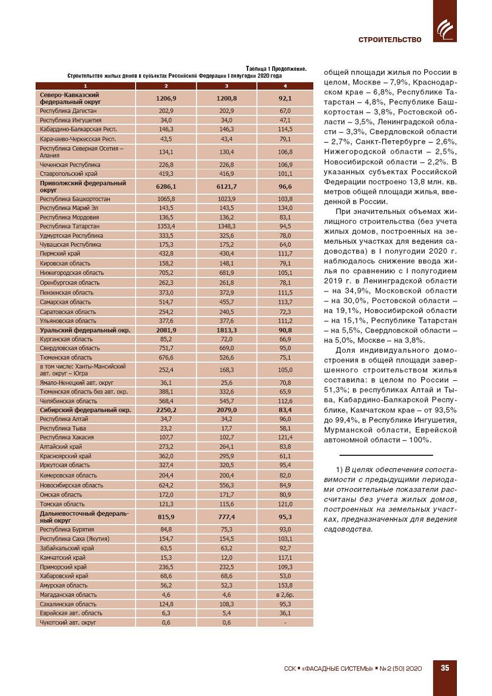 О жилищном строительстве в I полугодии 2020 года