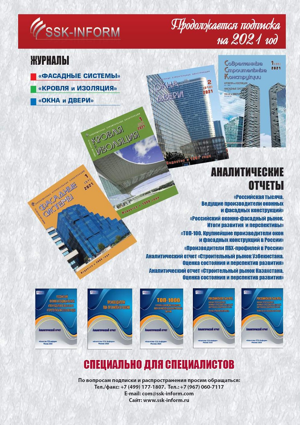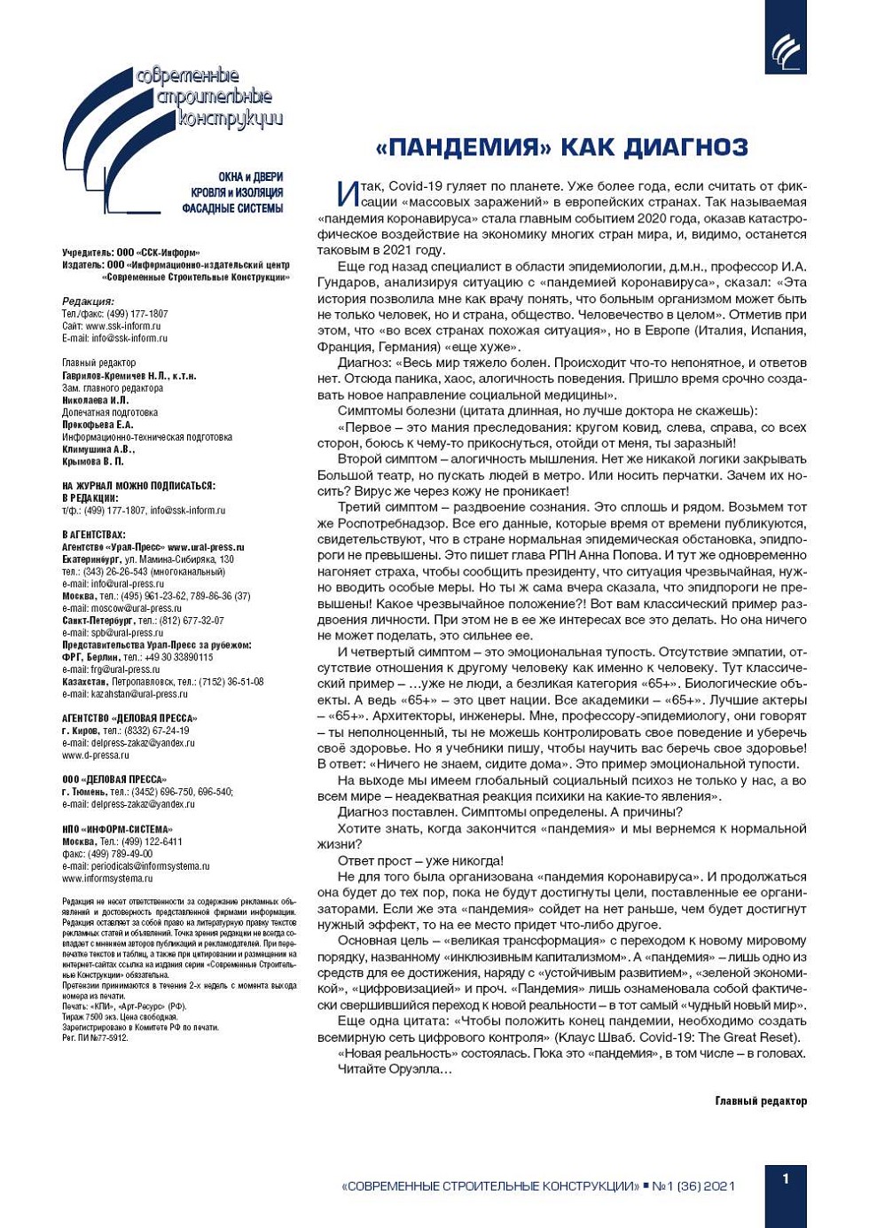 ПРЕВЬЮ ЖУРНАЛА СКАН СТР. SSK-Inform » Журнал Современные строительные конструкции » ПРЕВЬЮ » Номер 1 (36), 2021 ПРЕВЬЮ просмотр PDF-версии в JPG-формате Журнал Современные строительные конструкции Подписка на печатные и электронные версии online просмотр