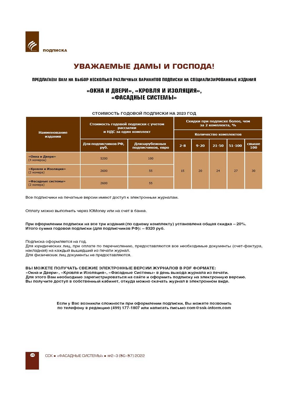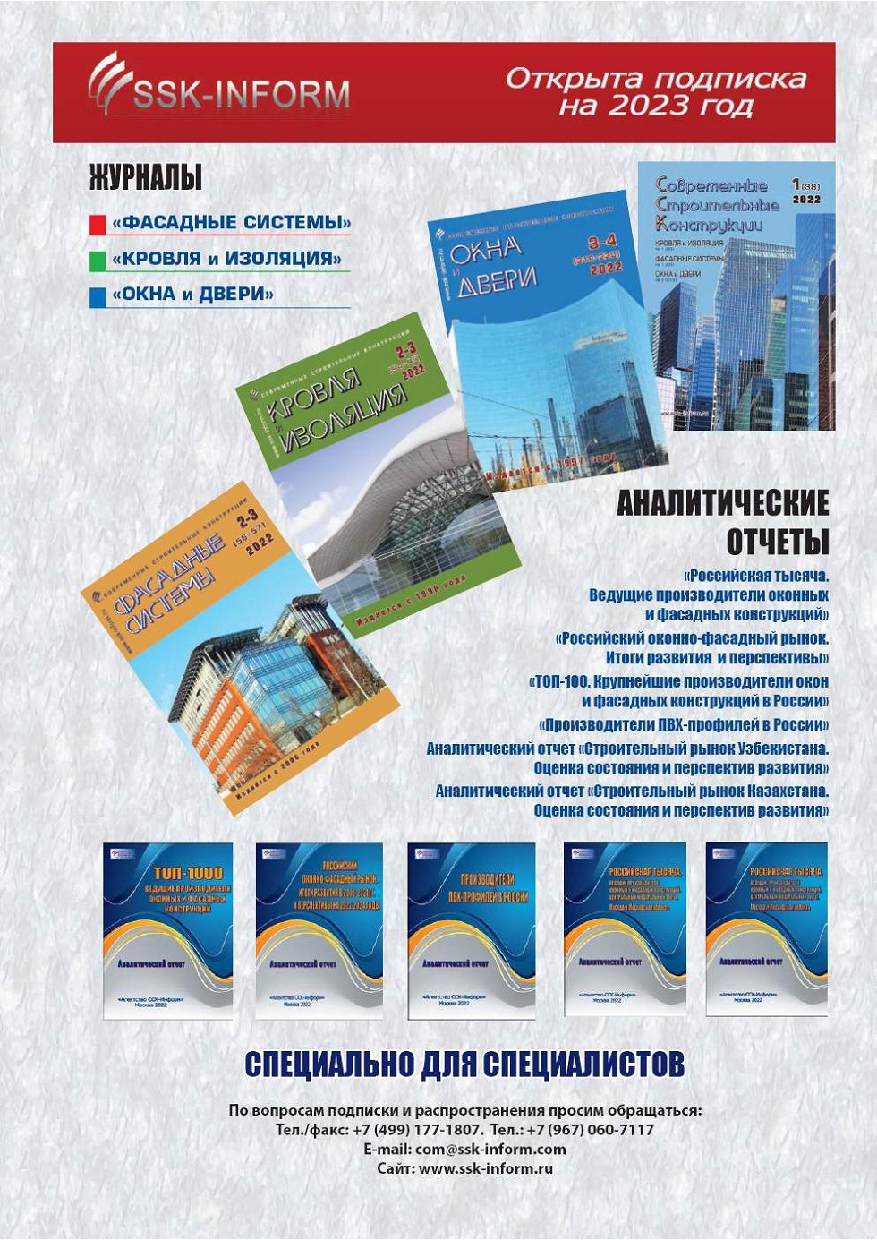 ПРЕВЬЮ СКАН СТР. SSK-Inform » Журнал Фасадные системы » ПРЕВЬЮ ЖУРНАЛА » Номер 2-3 (56-57), 2022 ПРЕВЬЮ ЖУРНАЛА просмотр PDF-версии в JPG-формате Журнал Фасадные системы Подписка на печатные и электронные версии online просмотр