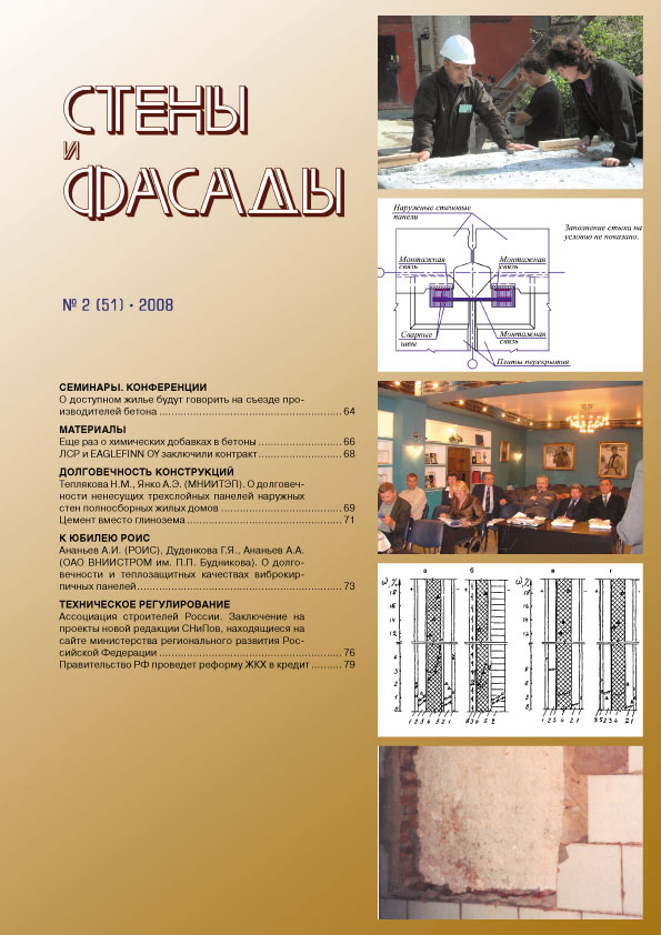 (ОАО ВНИИСТРОМ им. П.П. Будникова). О долговечности и теплозащитных качествах виброкирпичных панелей